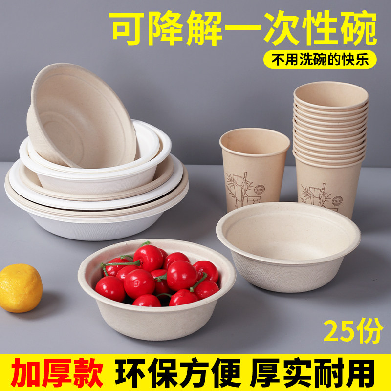 Одноразовое разложение бумажной чаши для утолщенных блюд с рисовой миской для домашней миски, блюд из целлюлозы, палочки для палочек, горячий горшок с посвушкой из бумажных пластин