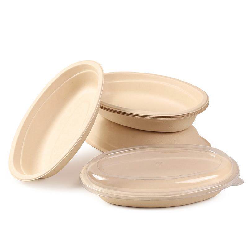 Одноразовая 800 мл с прямой овальной миской овальная упаковочная коробка Коммерческая легкая пищевая салат Биоразлагаемая коробка бенто