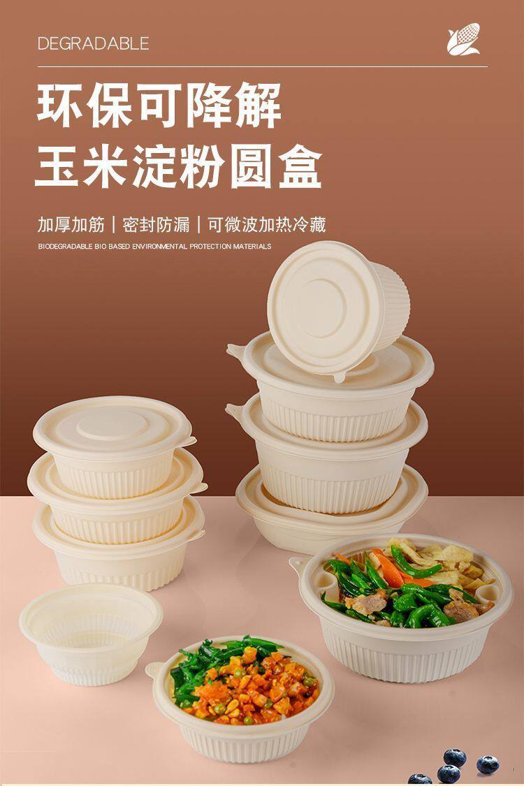 Кукурузный крахмал одноразовый ланч -коробку Биоразлагаемая коробка, экологически чистая круглая круглая коробка для ланч с крышкой кусоч