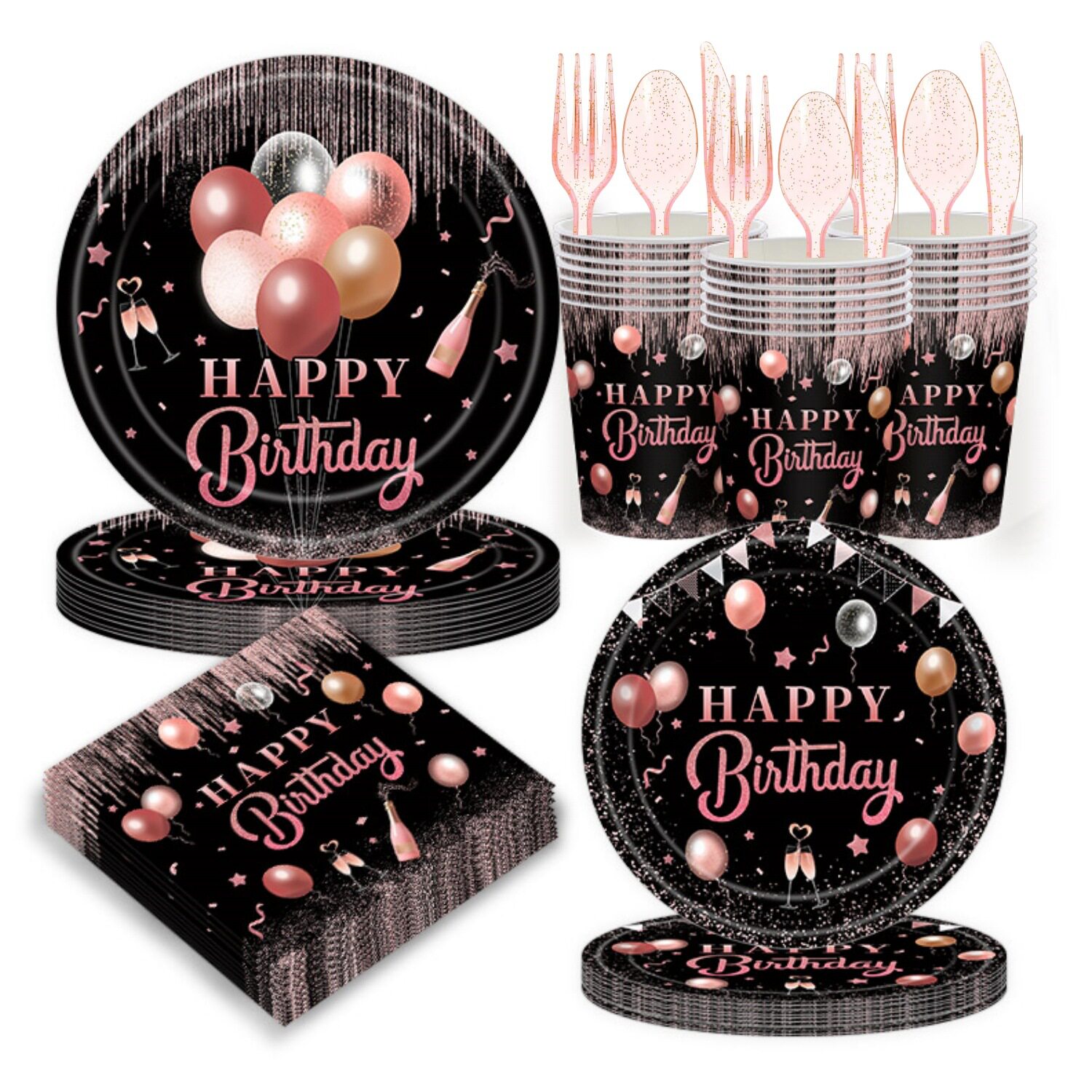 Розовое золото с днем рождения посуда вечеринка одноразовая бумажная тарелка бумажная стакан