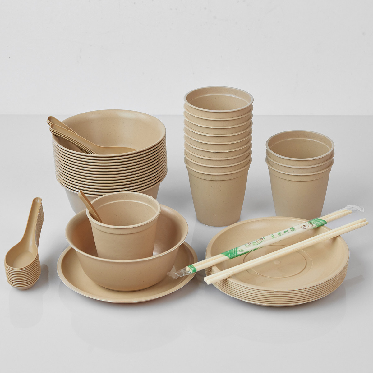 Одноразовая посуда, экологичный комплект для кемпинга для коммерческого использования, 4 предмета, увеличенная толщина