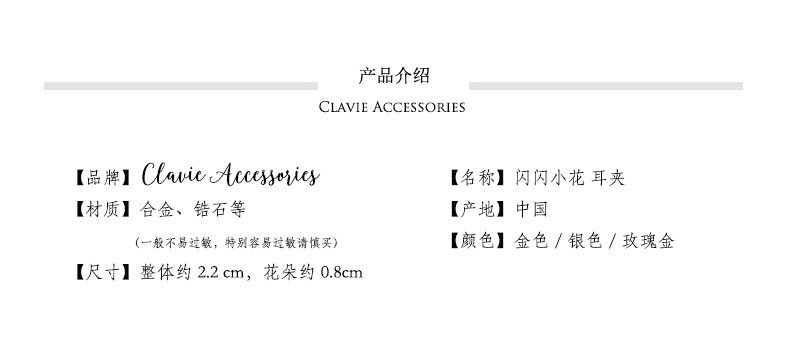 Clavie Accessories Японские изысканные серьги в форме цветка, маленькие клипсы, без проколов ушей, простой и элегантный дизайн