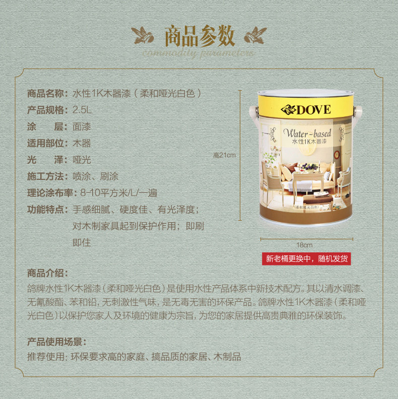 Голубиный лак экологически чистый водяной базирование на базе 1K Деревянная белая краска (мягкий матовый белый) 2,5 л.