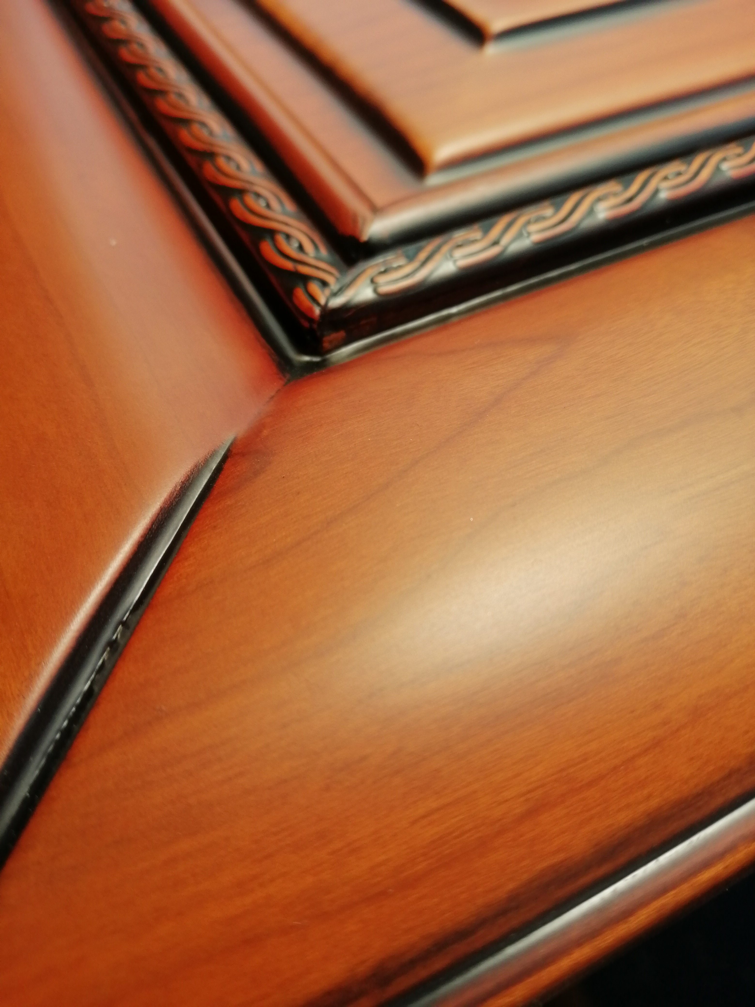 Реконструкция старой мебели: протрите старую мебель влажным хлопчатобумажным полотенцем---Один раз почистите прозрачную грунтовку---Протирать раскраску---После высыхания вытрите излишки цветовой---Покройте верхнюю часть.