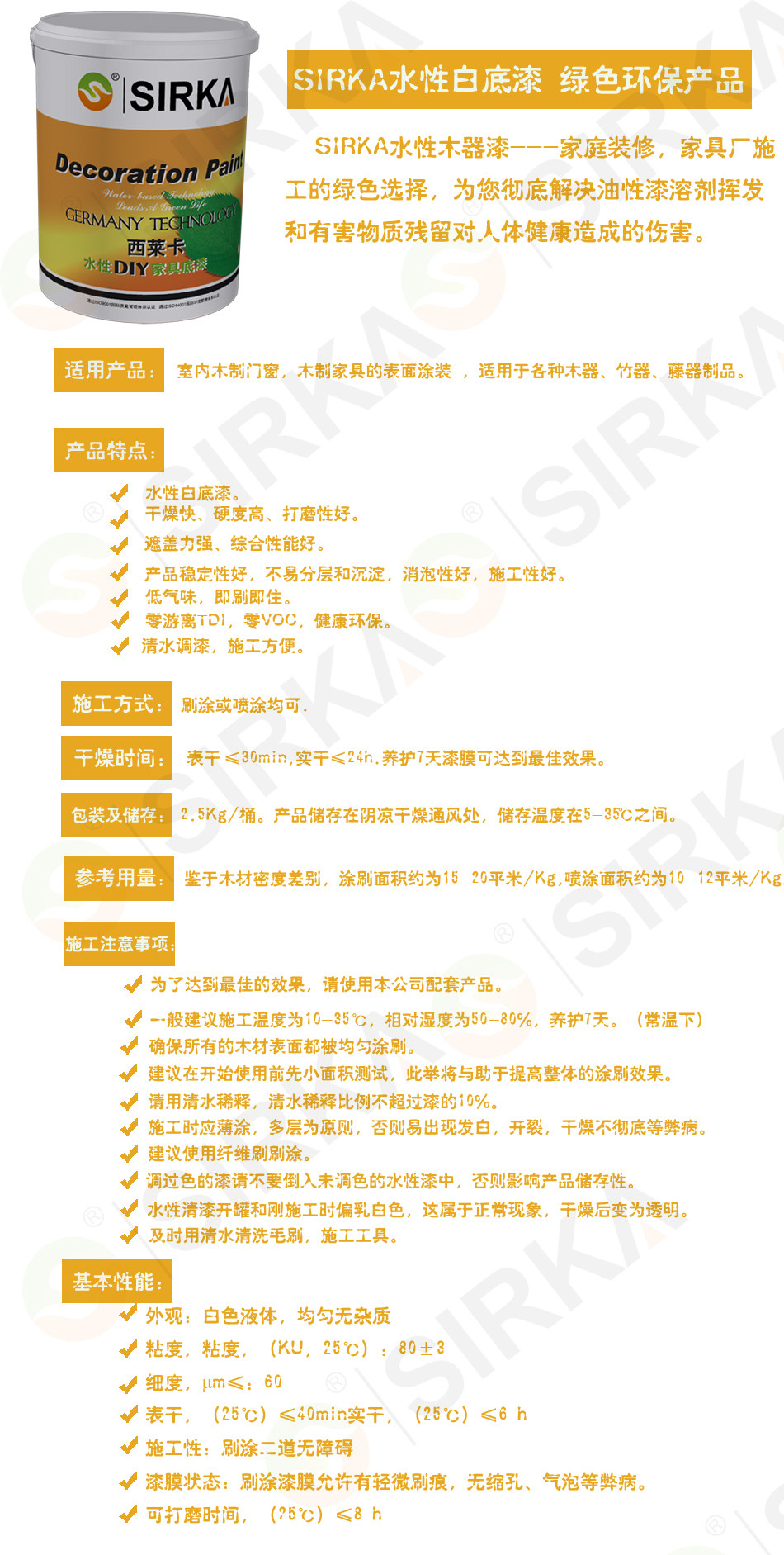 Sirka Экологически чистая краска на основе воды*Высоко -кладовая белая краска с водой на основе деревянной краски для краски без краски.