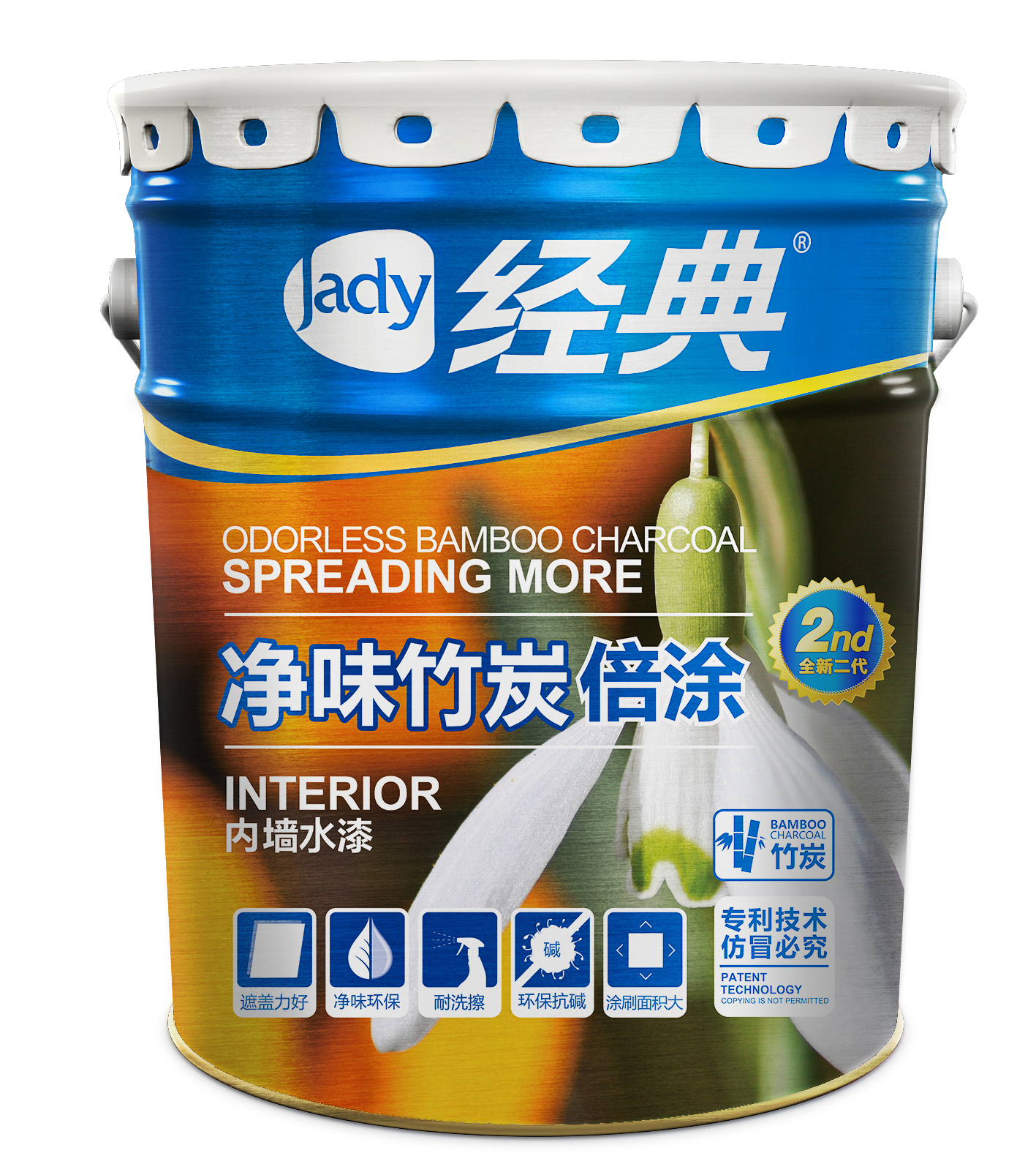 经典 Краска: Чистый бамбуковый уголь с двойным покрытием, краска для внутренних стен 2-го поколения. 18 л быстросохнущая самораспыляющаяся краска.