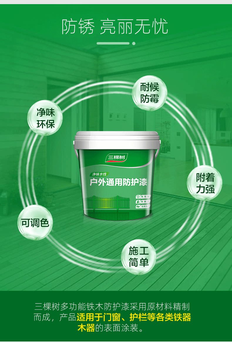 Три дерева, сетка со вкусом воды на открытом воздухе на открытом воздухе Универсальная защитная краска многоцветная дополнительная нижняя подушка, одна удобная деревянная металлическая краска 1