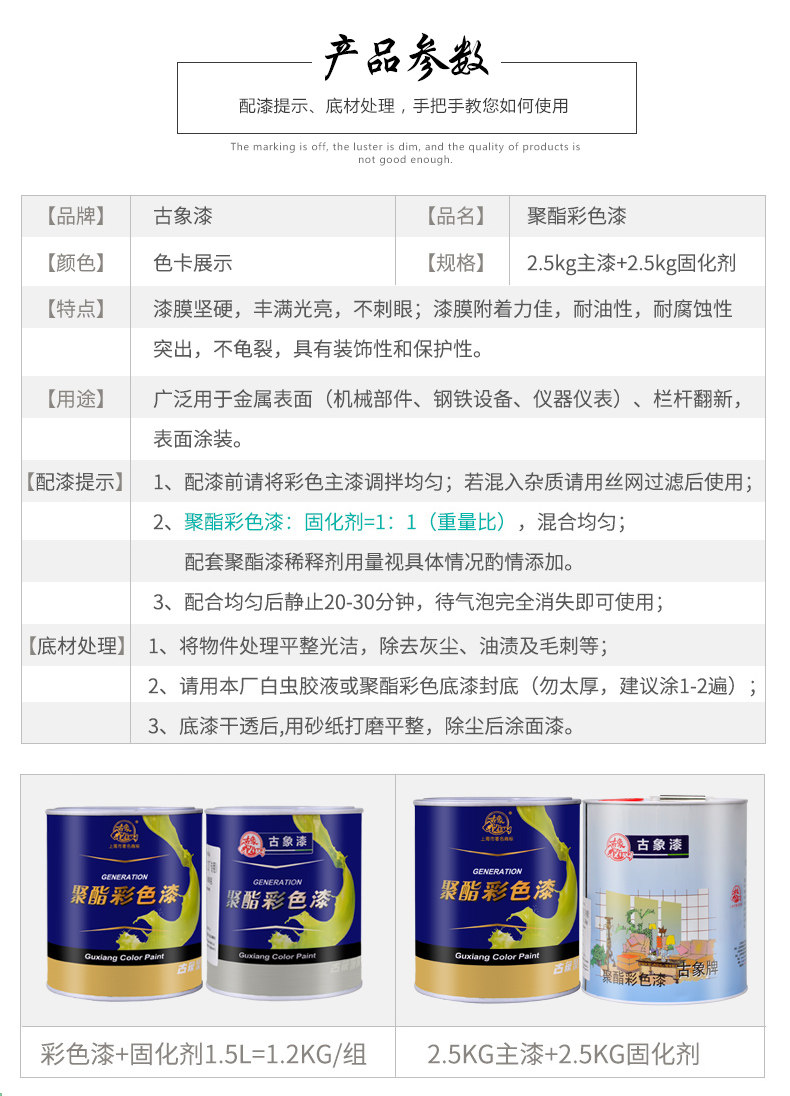 | Цвет: | 2 кг полиэфирной краски разбавитель, Белый 5 кг, Черный 5 кг, Дым серой 5 кг, Большой красный 5 кг, 5 кг среднего желтого, 2,5 кг агента для лечения на продажу, Основная краска 2,5 кг одиночной продажи, 5 кг имитационного цвета красного дерева, Средний зеленый 5 кг, Черный 1,2 кг, Белый 1,2 кг, Большой красный 1,2 кг, 1,2 кг в Китае, HALAN 5 кг, HALAN 1,2 кг, Табак 1,2 кг, 600 граммов главной краски одиночной покупки, 600G -агент для выкройки одиночная покупка, Zhonghuang 1,2 кг |