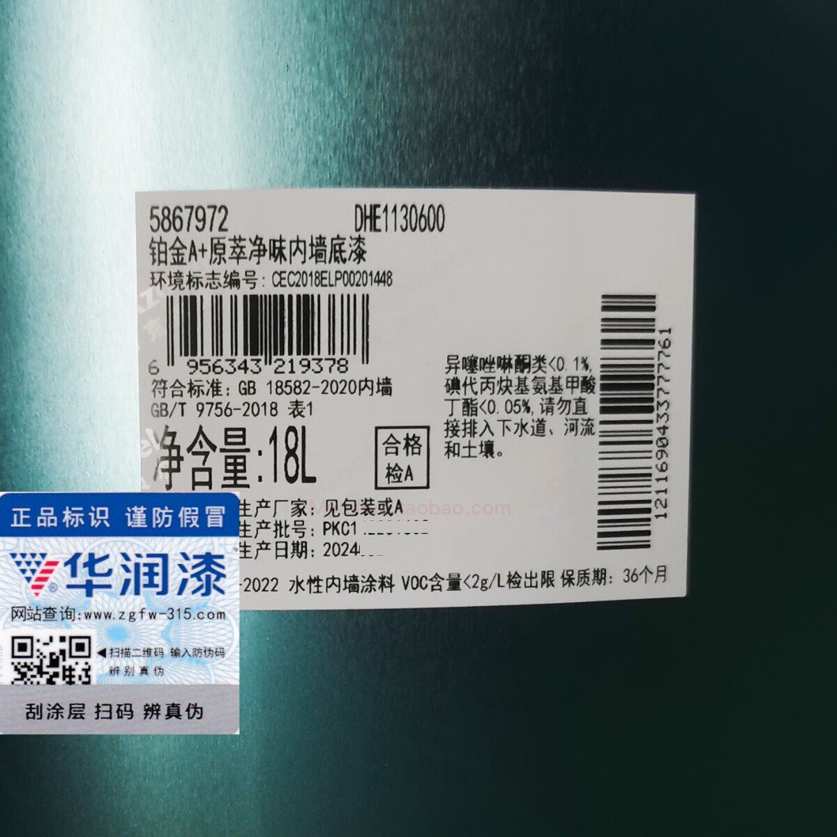 China Resources Platinum A+Оригинальный классический внутренний стеновой праймер DHE1130600 Очистить формальдегид против пищевого сорта