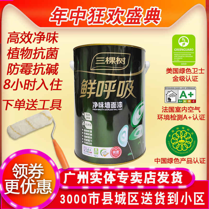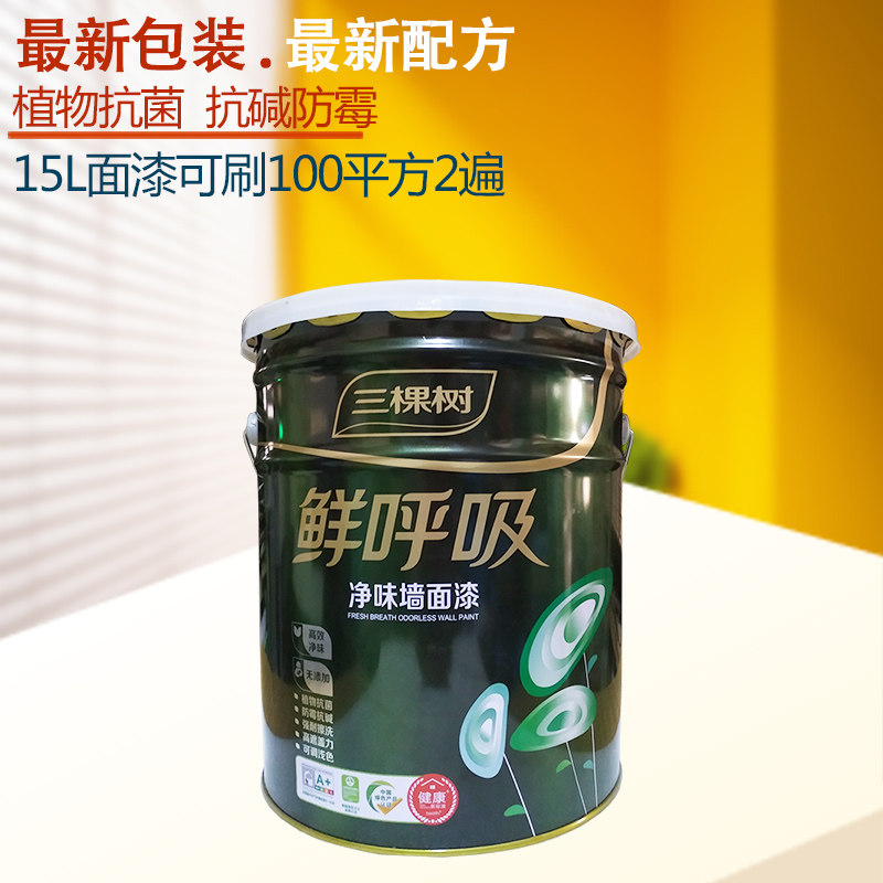 Три краски дерева Свежая дыхательная сетка вкуса полная краска настенной краски Внутренняя стена латексная краска против моря и экологически чистые покрытия для краски 15 л.