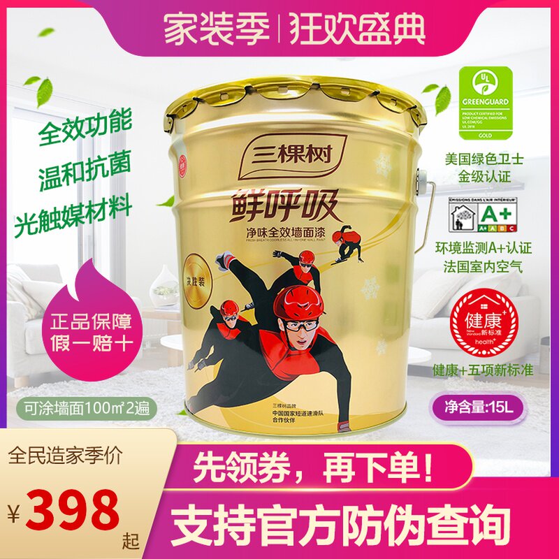 Три дерева рисуют свежее дыхание вкусовое вкусовое версия Версия настенной краски Внутренняя стена латексная краска белая внутренняя экологически чистая краска краска