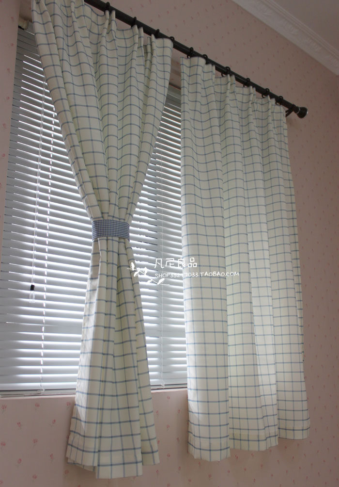 Ins nordic средиземноморской клетки маленькая занавесная кухня гостиная спальня спальня спальня занавеска настройка окна