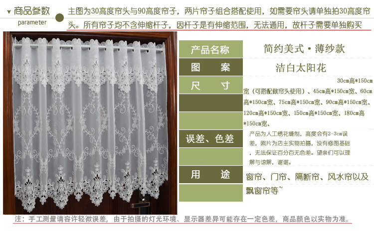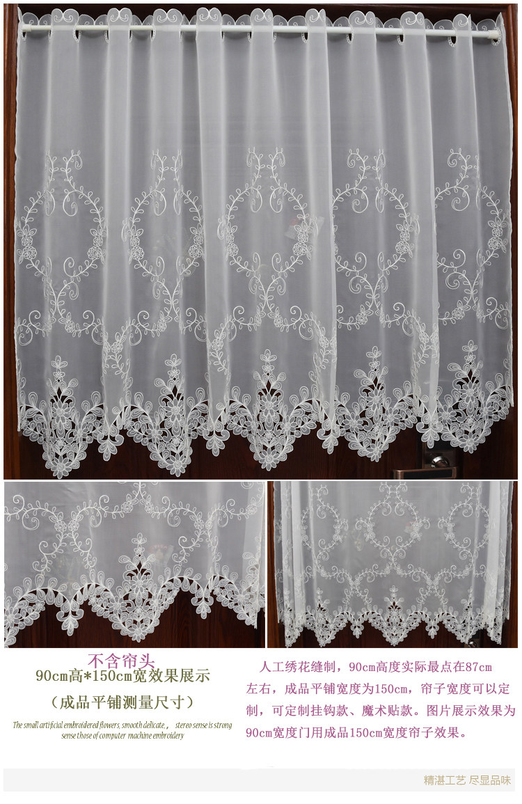 Белая штора, ткань, в американском стиле, с вышивкой