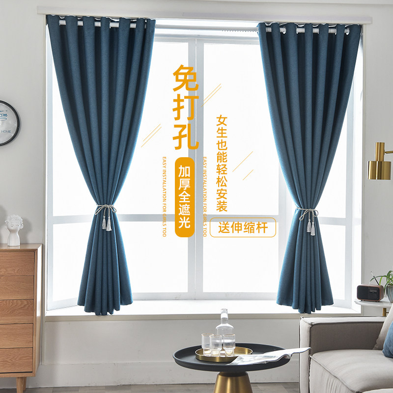 Полностью отключение спальни для спальни прокат эрнатов без удара по установке занавески с телескопическим стержнем Полный набор простых солнечных ткани ткани