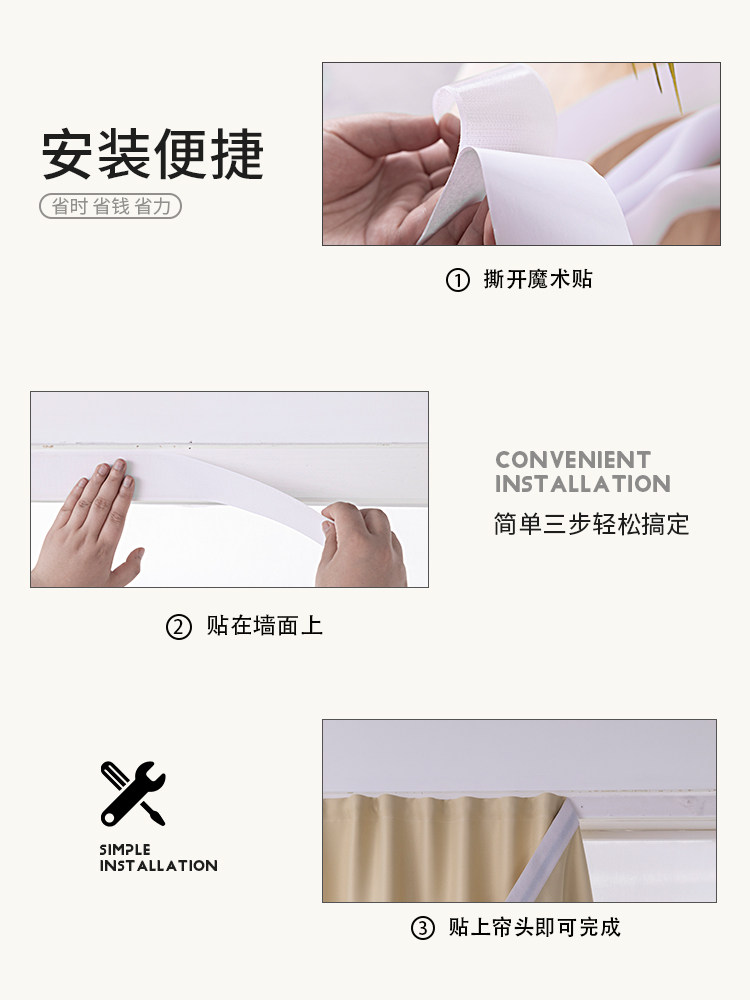 Ткань, самоклеющаяся современная штора на липучке для гостиной, простой и элегантный дизайн