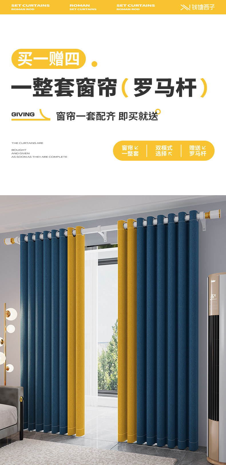 Небольшие окна и короткие шторы придают римским полюсам полный набор 2024 Новой спальни гостиной балконы балконы избранные окна.