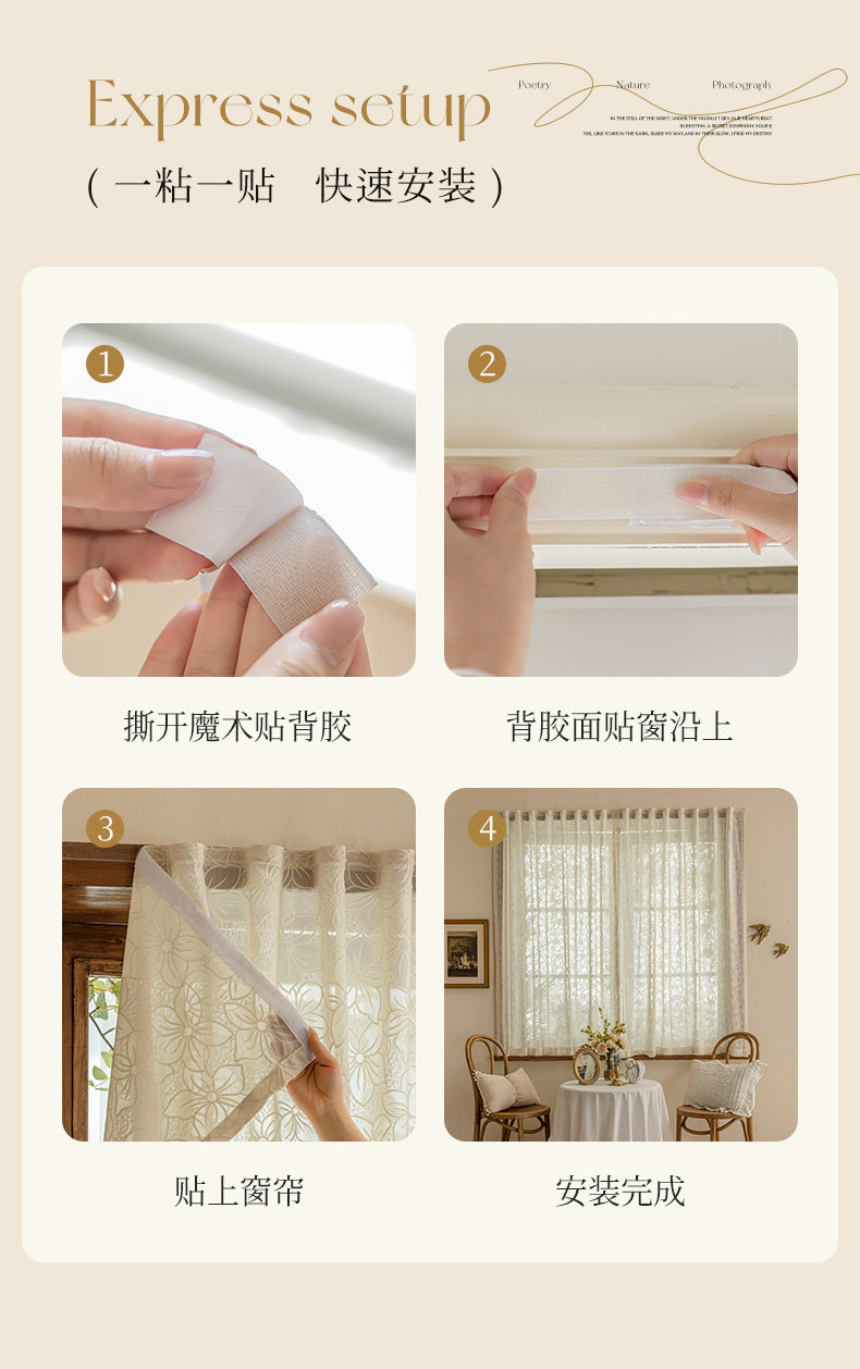 Штора на липучке, самоклеющаяся ткань, французский стиль, защита от солнца