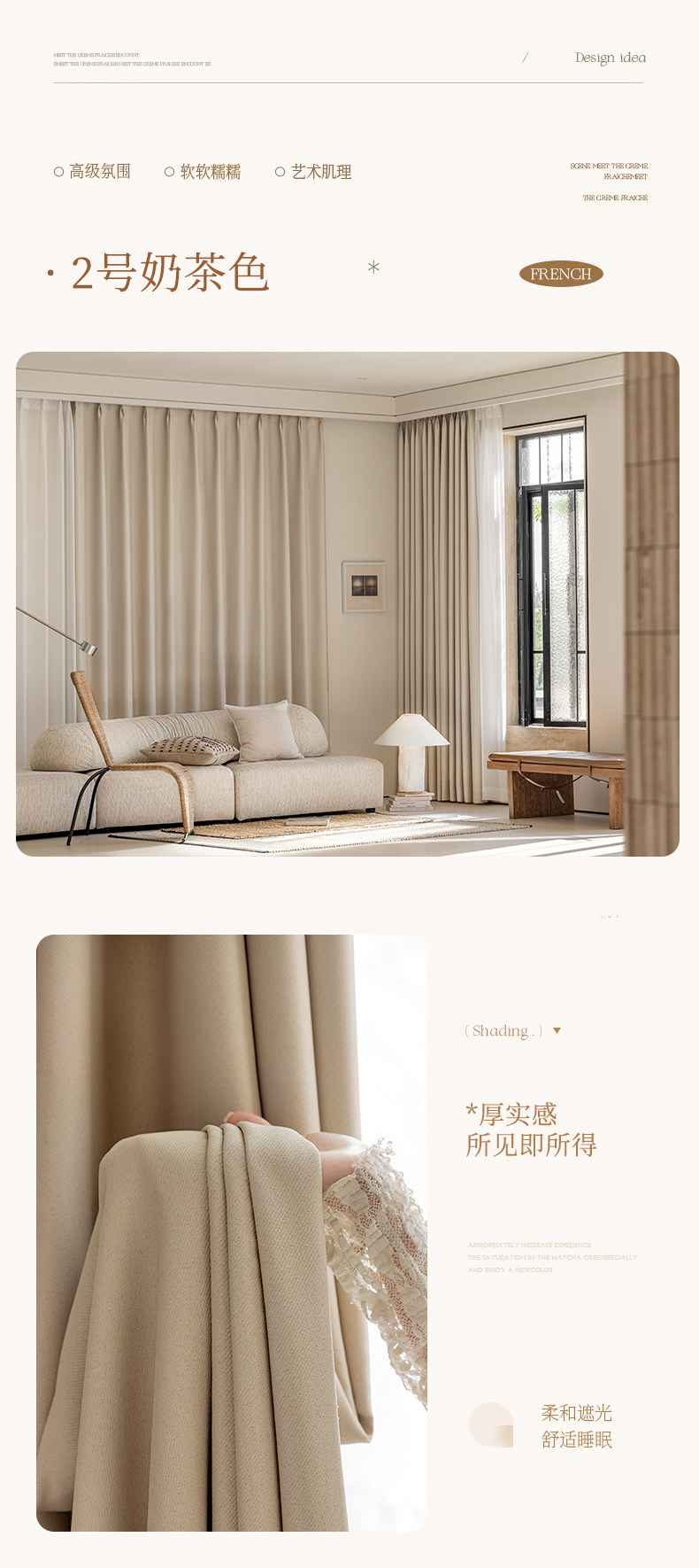 Повышенная 3-метровая ткань для чая с молоком, новинка 2024 года, полностью затемняющая занавеска, готовая, самодельный дом, вилла, гостиная, спальня, напольная
