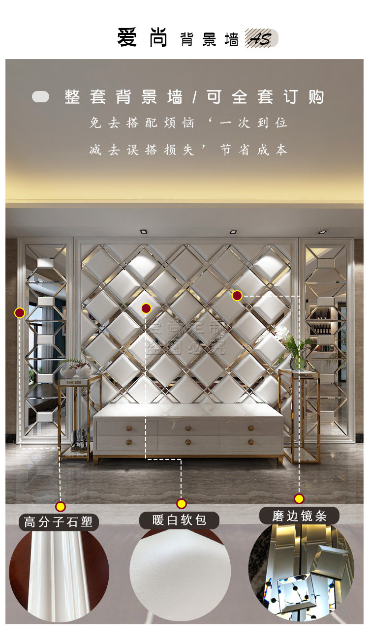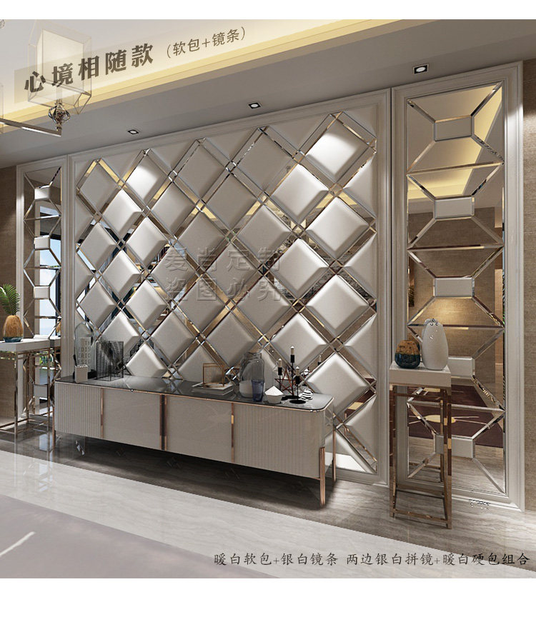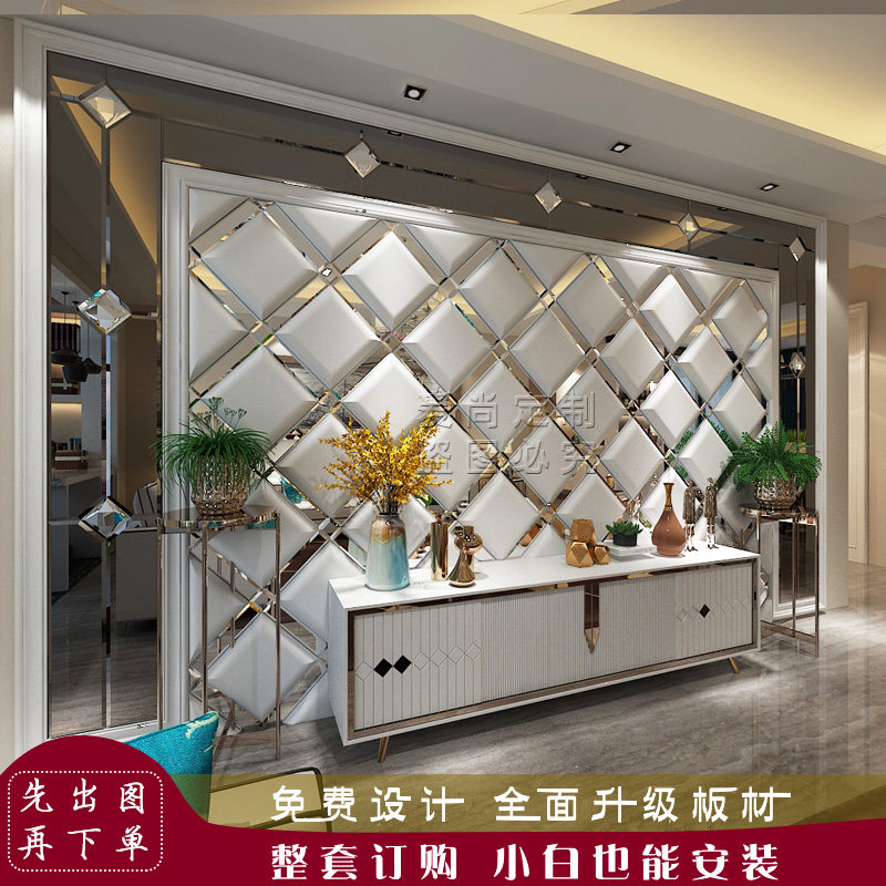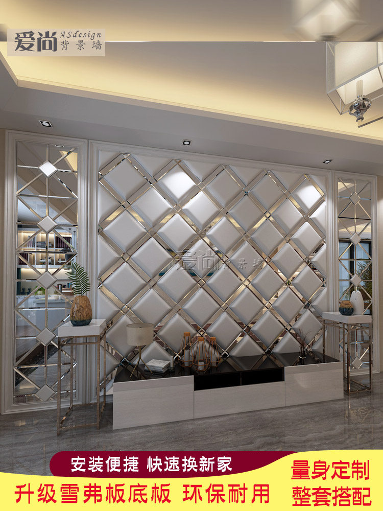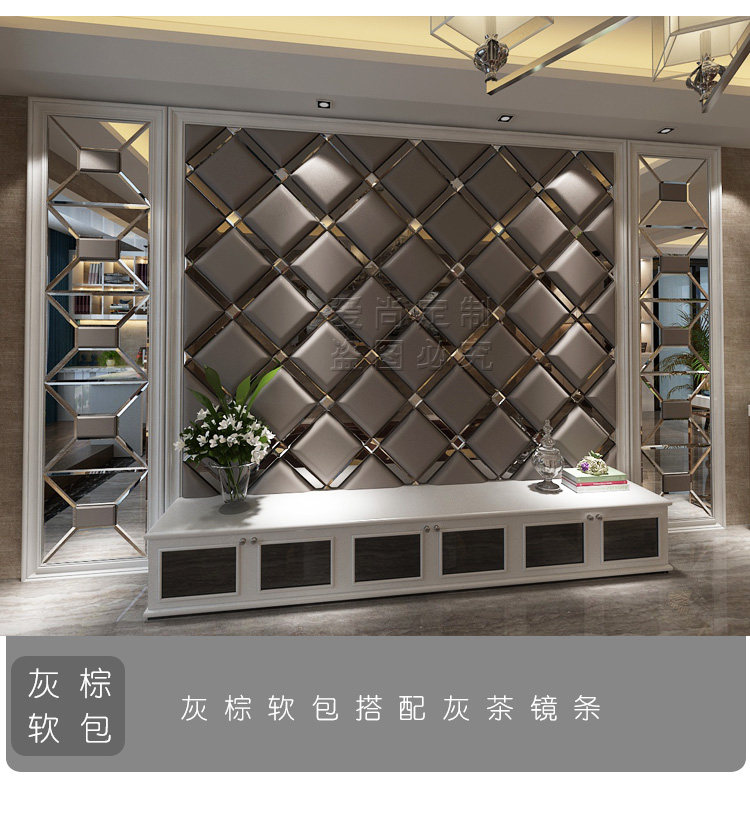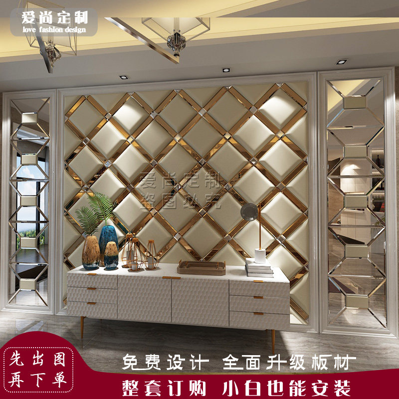 Индивидуальная мягкая сумка ТВ фон стена с жесткой сумкой Стеклянная зеркальная полоса телевизионное телевидение Стена простая европейская простая кожаная фона фона стена