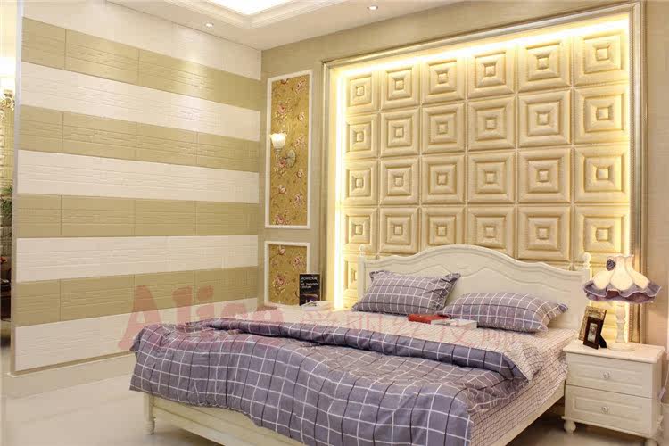 Китайская стиль анти -коллизионная мягкая сумка вырезана в жесткой сумке Фоны стена в спальне.