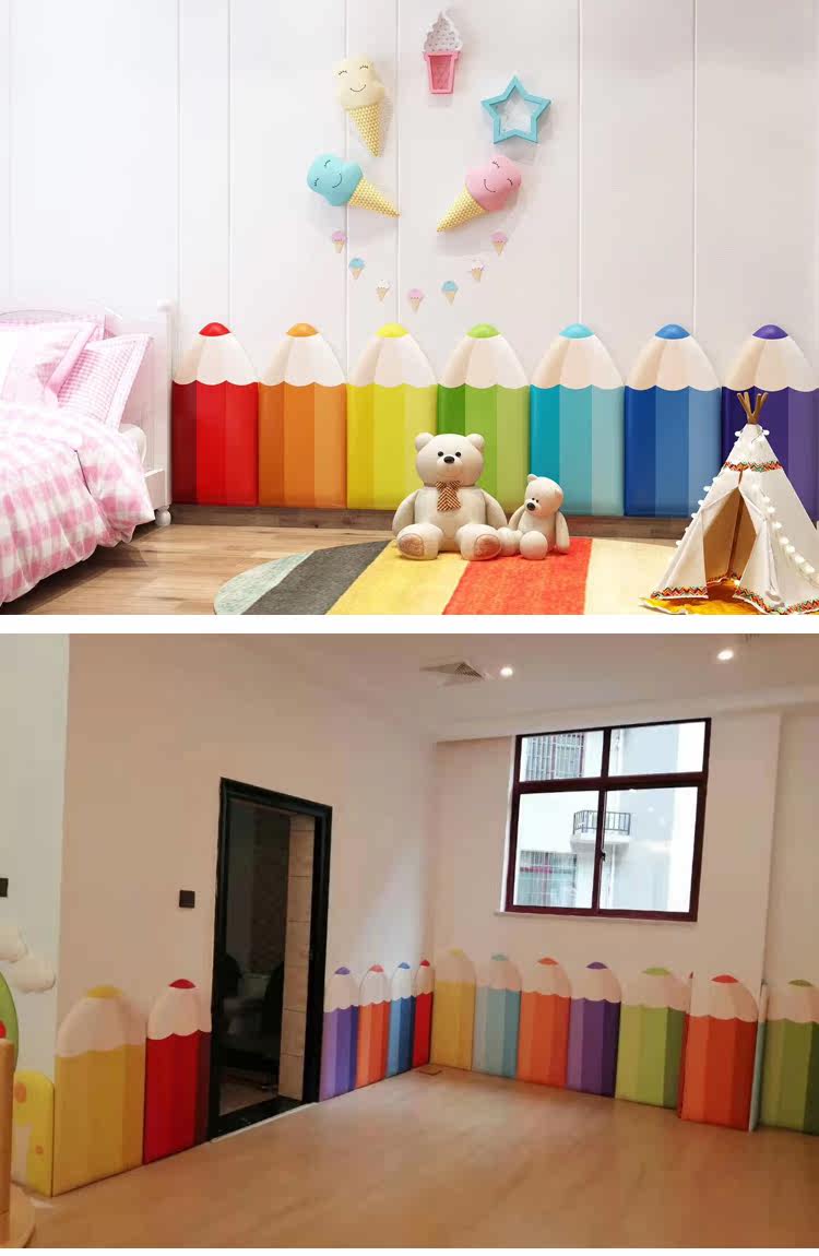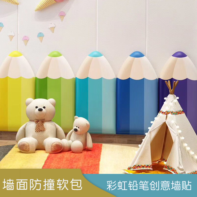 Детская мультяшная настенная лента на стену, радужный карандаш для детского сада, раннее развитие, защита от столкновений