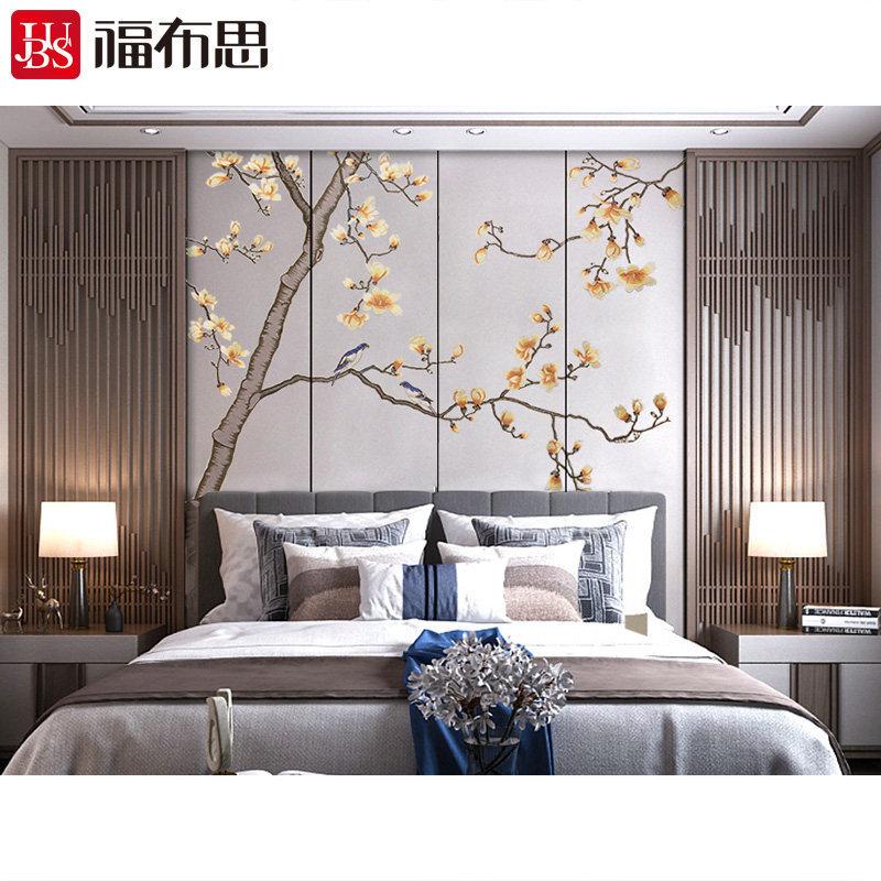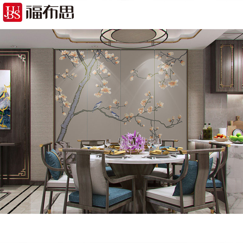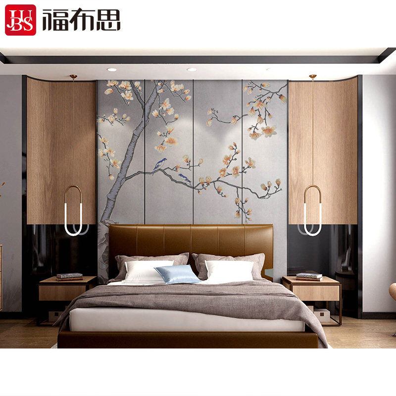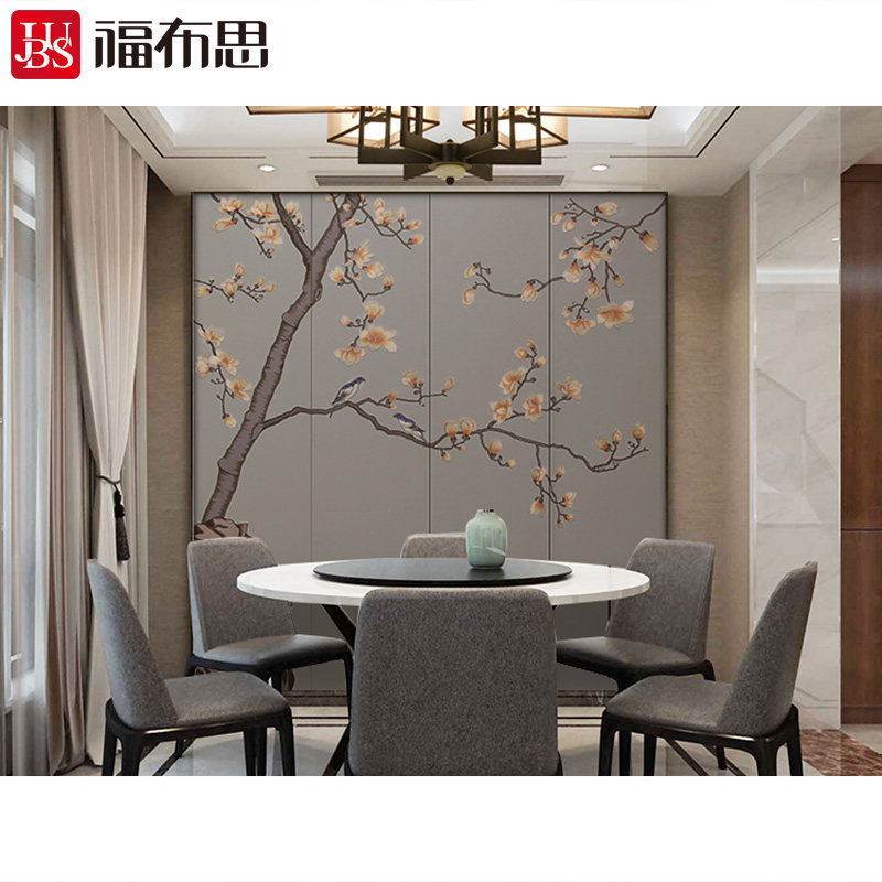 Фубурус вышитый вышитый вышитый вышитый твердый мешок фон стены дерево магнолия гостиная китайская жесткая сумка настенная ткань фиолетовая орхидея рифма