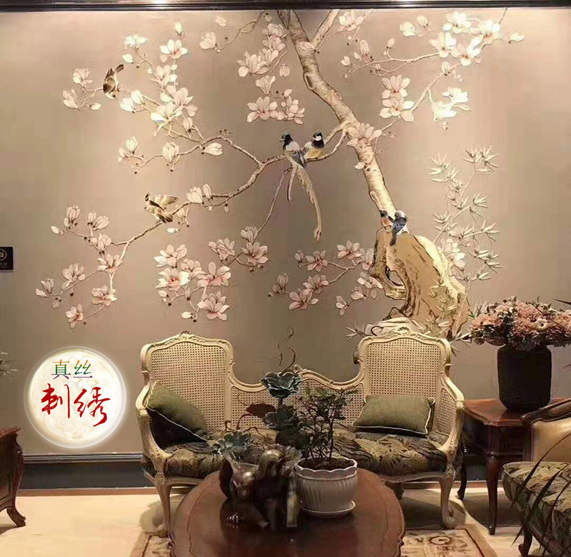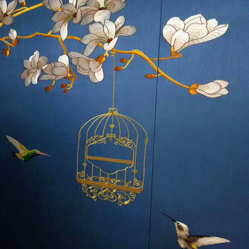 Китайская стиль цветочные и птичьи вышивка европейская шелковая вышивка твердые сумки на стенах кожаная вышивка гостиная кровати вышитая настенная ткань мягкая ткань