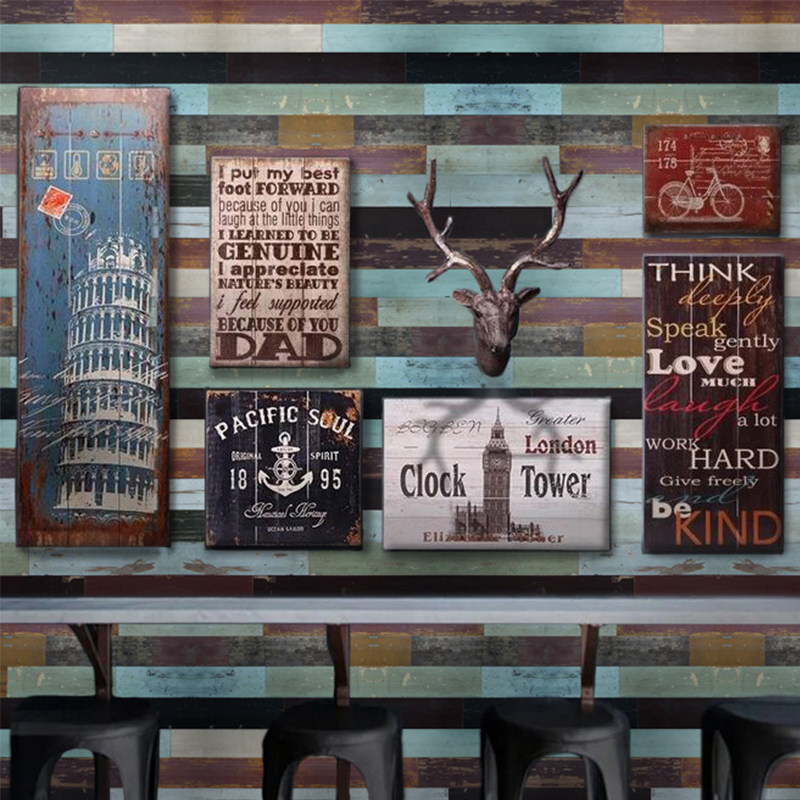 KASARO Европейский стиль промышленного ветра самостоятельно, старая древесная доска, старая судовая доска ретро -бар Кафе украсить сплошную фоновую стену