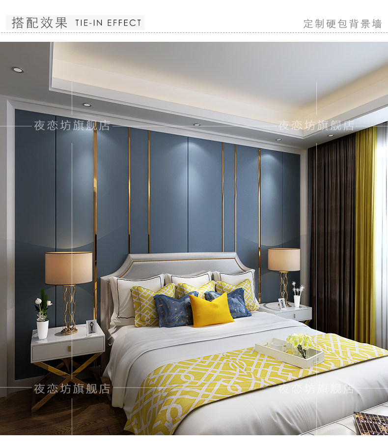 Европейская стиль мягкая сумка Фоны Стена спальни спальня Металлическая граница Современная простая легкая роскошная жесткая сумка ТВ фоновая стена гостиная