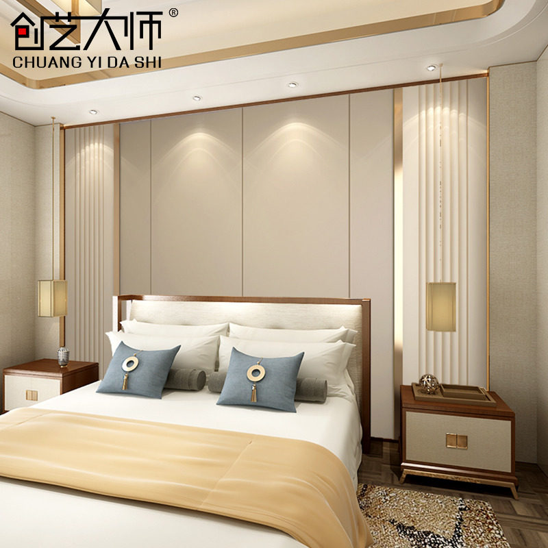 Современная легкая роскошная жесткая сумка фоновая стена популяризированная металлическая диван -диван пленка и телевизионные стены