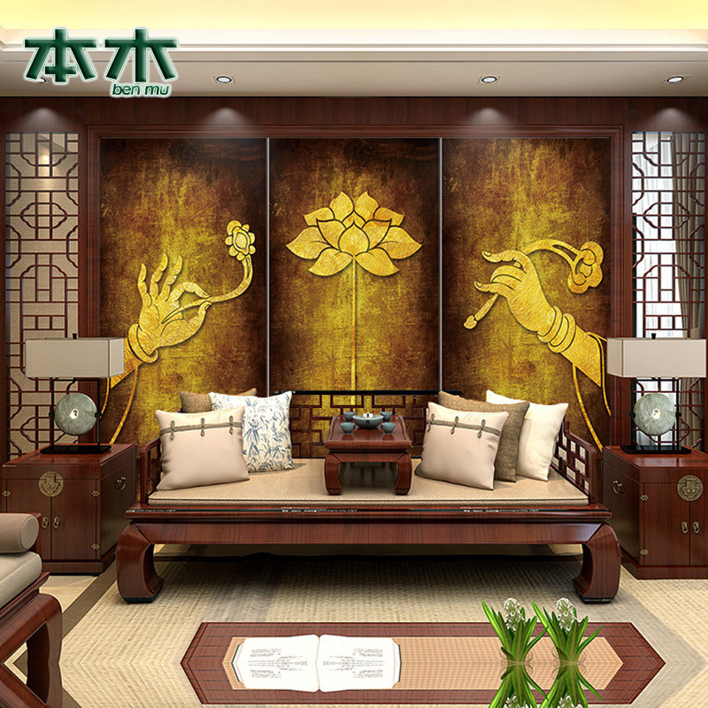 Китайская стиль гостиная жесткая сумка декоративная живопись отель чайхаус Zen Buscle TV фон стена мягкая сумка на стена настенная роспись