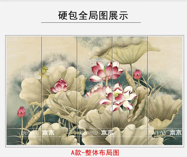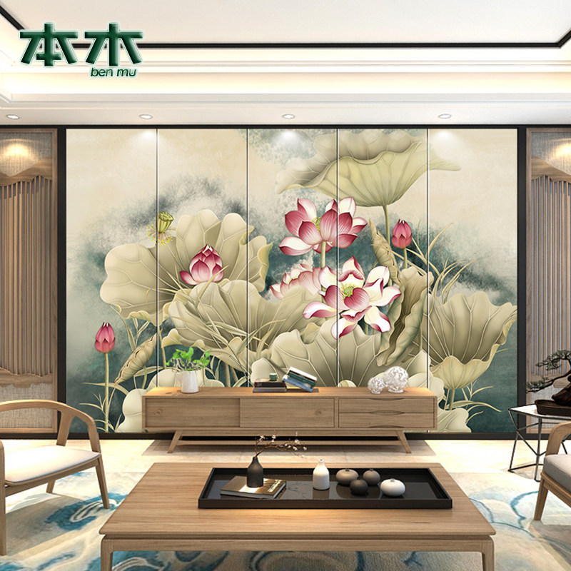 Новая китайская стиль жесткая сумка гостиная диван телевизионный фон стена лотос мягкий жесткий пакет украшения индивидуальная кожаная спальня и телевизионная стена