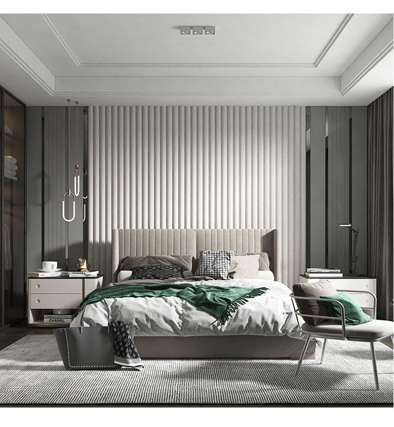 Жесткая сумка спальня фоновая стена кровати современная легкая роскошная цилиндрическая простая металлическая полоса мягкая сумка главная кровать головка кровати