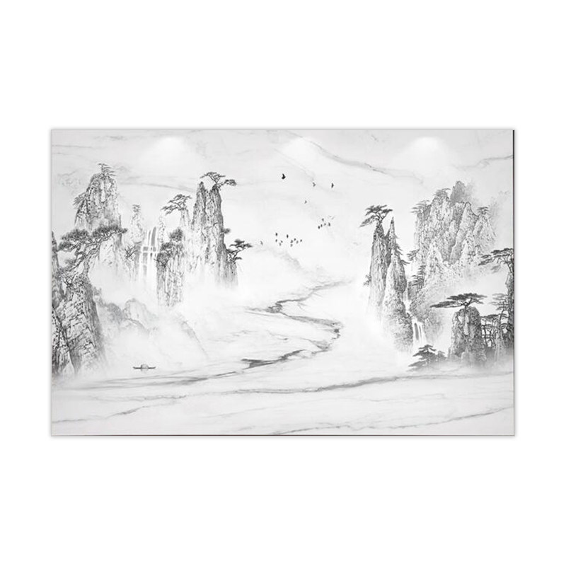 Китайская жесткая сумка телевизор Фон Стена Гостиная Диван спальня для спальни кровать для карликовых досок, элегантные фрески Zenyi Landscape Custom