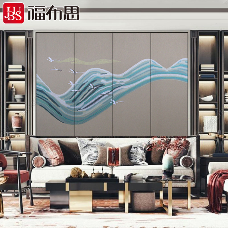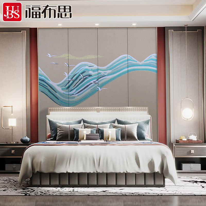 Fuburi Новая китайская вышиваемая фона стена спальня спальня кроватя