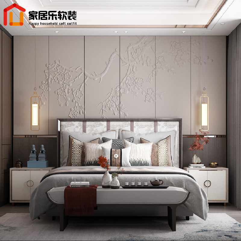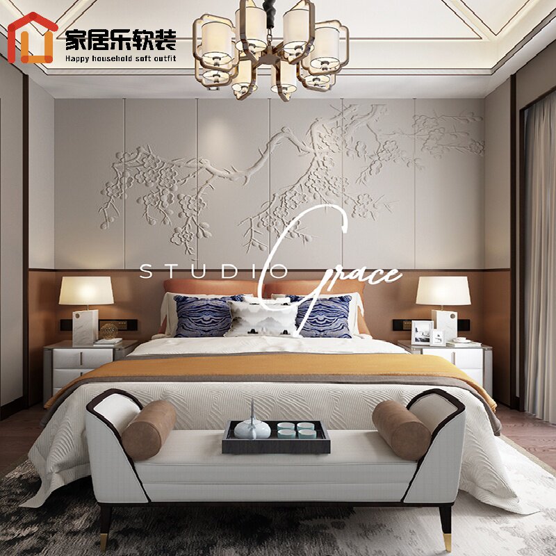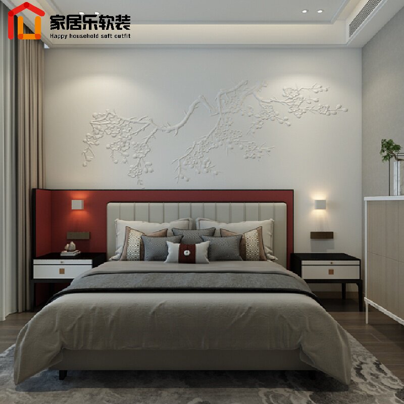 Домашняя обстановка Новая китайская кожаная резьба Фоновая стена кровати с жесткой сумкой дома мягкая мебель трехмерного облегчения на фоне замены дивана.