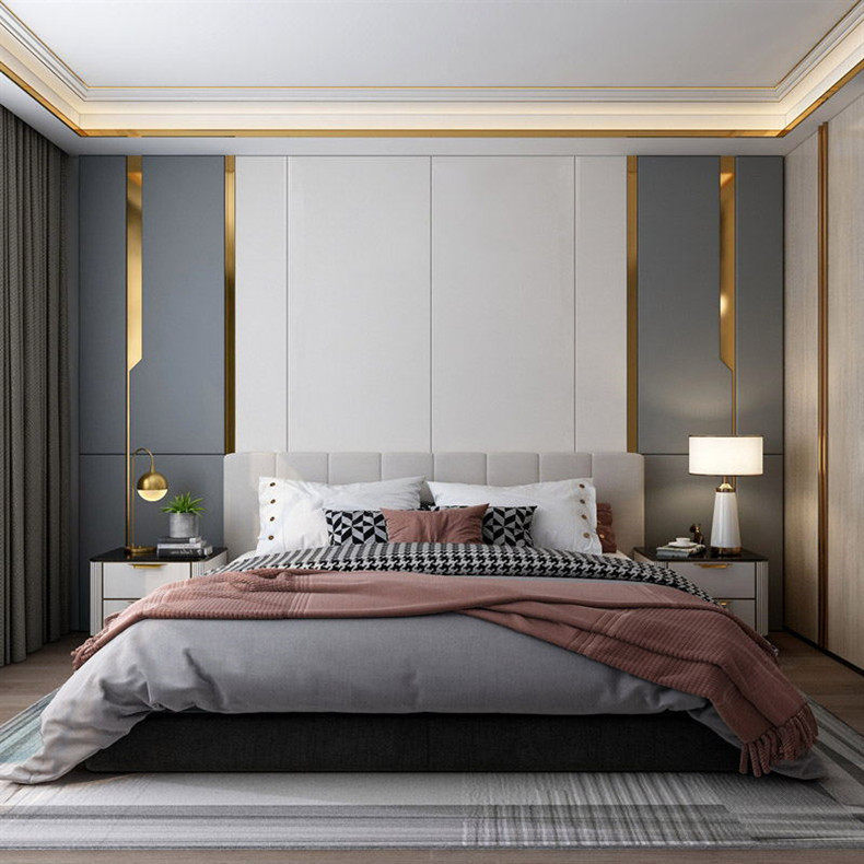 Современная металлическая инкрустация камня для кровати, лента, простой и элегантный дизайн, легкий роскошный стиль