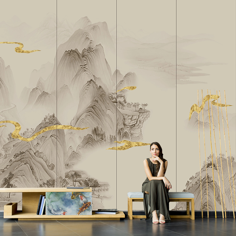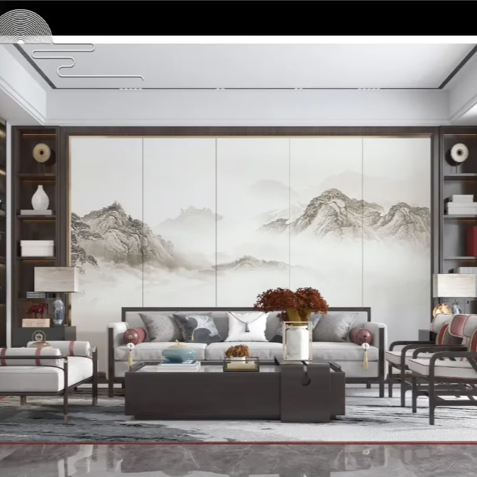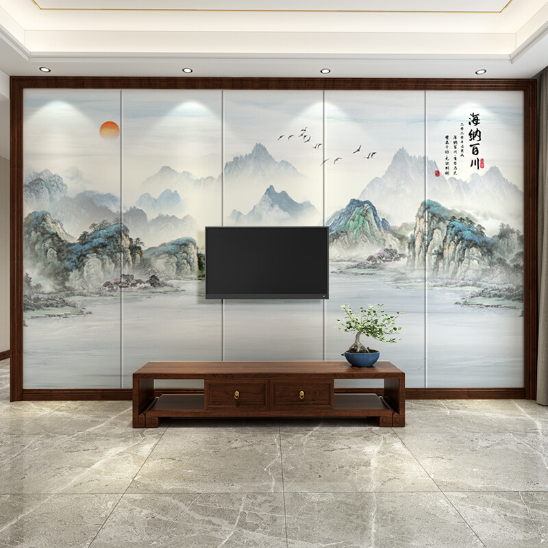 Новый китайский стиль чернила пейзаж твердая сумка фон настенная панель украшение гостиной вышивка твердая сумка фреска чайная комната кабинет настенное покрытие
