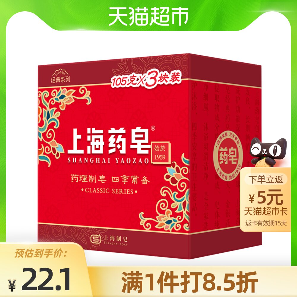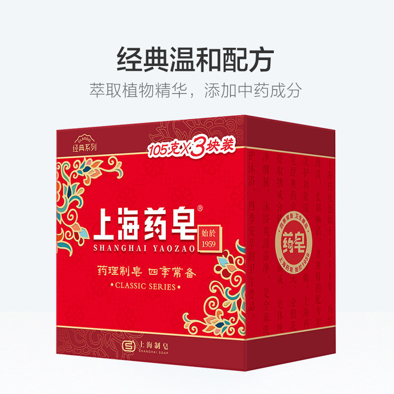 上海 Медицинское мыло классическое лекарство мыло 105G*3 кусочки лекарства, мыло для медицины, четыре сезона, мытье лица, ванна, мыло для ванны, мыло для ванны