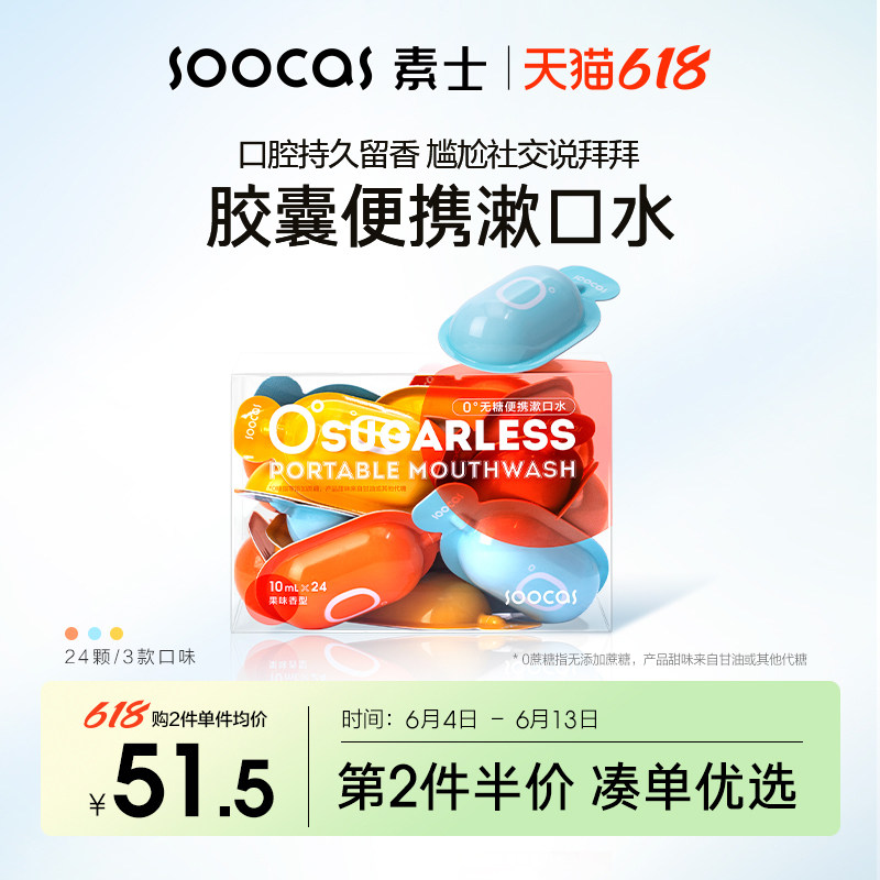 素士 Портативный оральный гигиенический свежий ополаскиватель для рта со стойким ароматом подходит для мужчин и женщин, 24 шт
