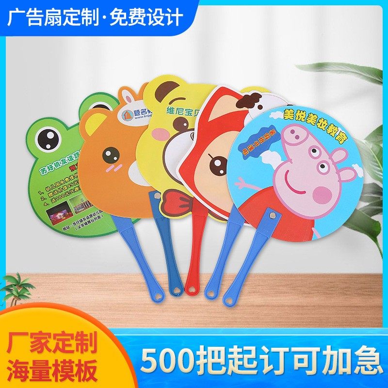 Рекламный поклонник индивидуально рекламный пластиковый фанат Cartoon Cartoon Small Fan, забронированный вентилятор PP и срочно настроенный логотип 1000 печати.
