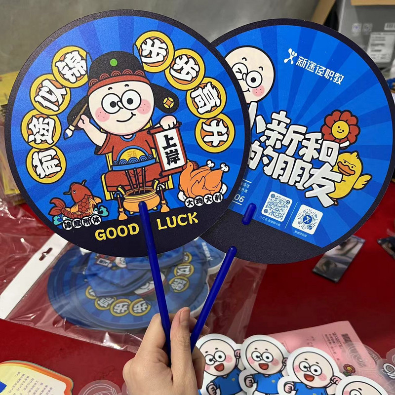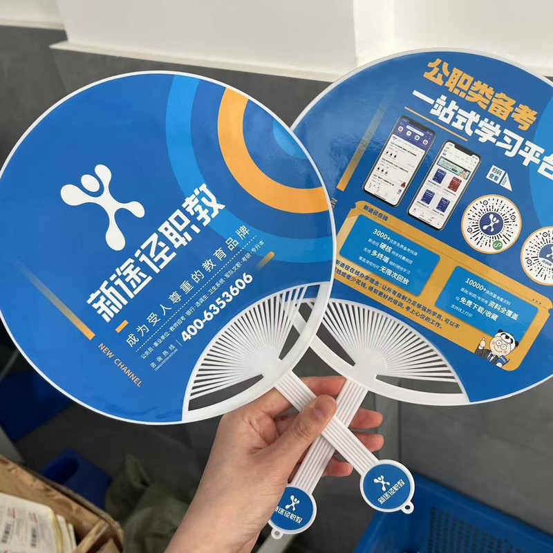 Рекламный фанат пользовательский мультфильм пластиковый пластиковый рекламный вентилятор круглый вентилятор вентилятор вентилятор вентилятор ручка для оболочки Новый путь 2024 Материалы