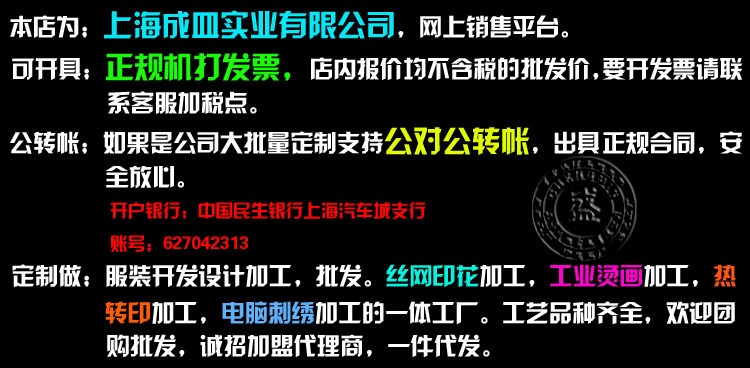 Наша фабрика оптовая индивидуальная рекламная культурная рубашка,Создание воротника/круглой шеи/слота/молнииТолстовка с капюшоном,С длинным рукавом/коротким рукавом/стойкой -ус -воротник/карман/лацкарубашка поло,Длинный -с коротким рукавом/карман/Круглый -лайка, плащ, рубашка, конная клипа, рекламная крышка, фартук и т. Д.;Коллаж Контрастная модная корейская версия&Сплошная классикаСущностьПримите текст шаблона логотипа печати.Мастерство; Два -светящиеся следы, блестящее покрытие и серебро, пенообразование, золото и серебряный порошок блеска, резиновая печать, водяной знак и другой процесс печати шелковой сети.Предпринять компьютерную вышивку, промышленные горячие картины, обычные теплопередачи и т. Д.Ниже приведен некоторый дисплей процесса (производитель делает снимки, украденная карта должна быть исследована).