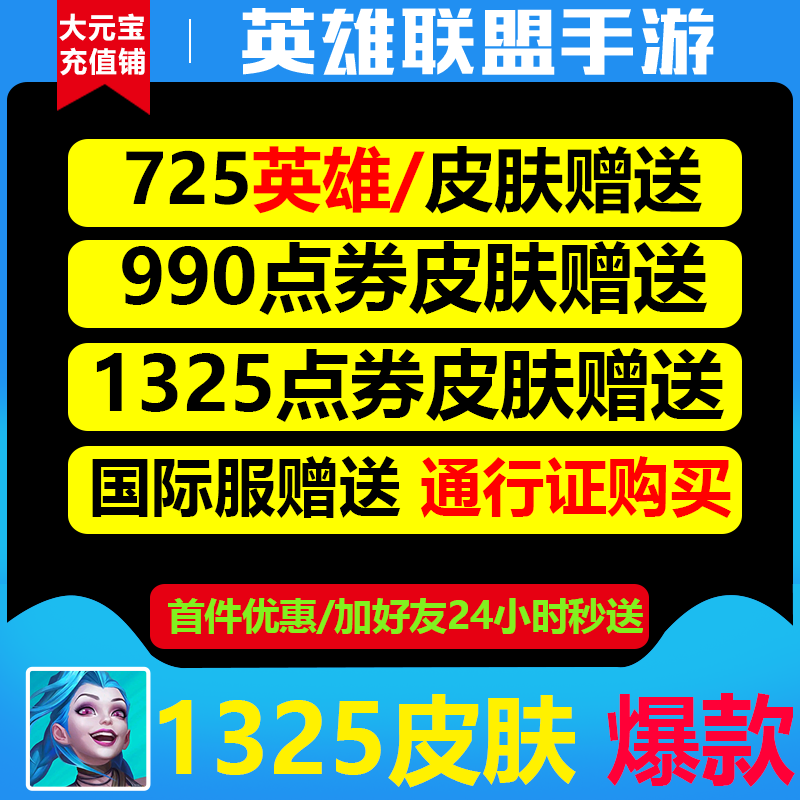 LOL League of Legends Mobile Games Gift 1325 Skin Point Волонтер добровольцев международным сервером Полный сервис Американский подарок сервисного обслуживания