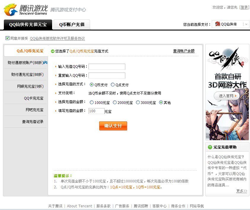 Q Монеты, обмененные на веб -сайт QQ Xianxia Biography Yuanbao:http://xxz.qq.com/comm-htdocs/pay/?t=xxz