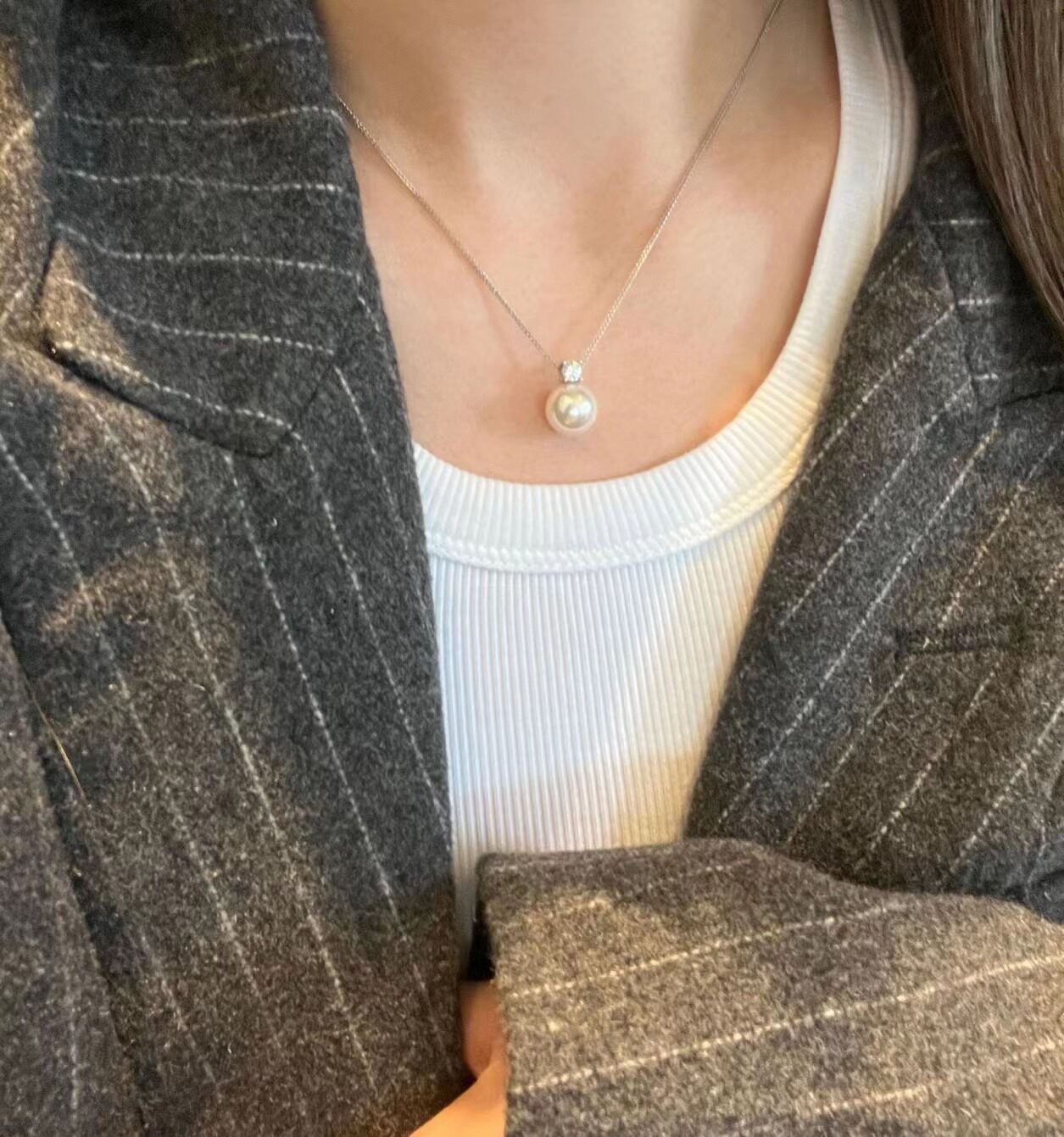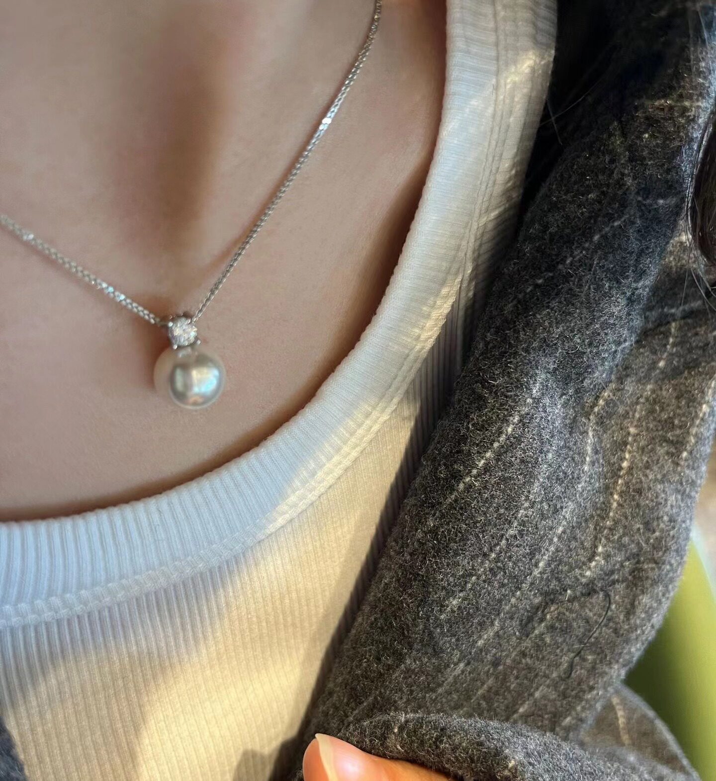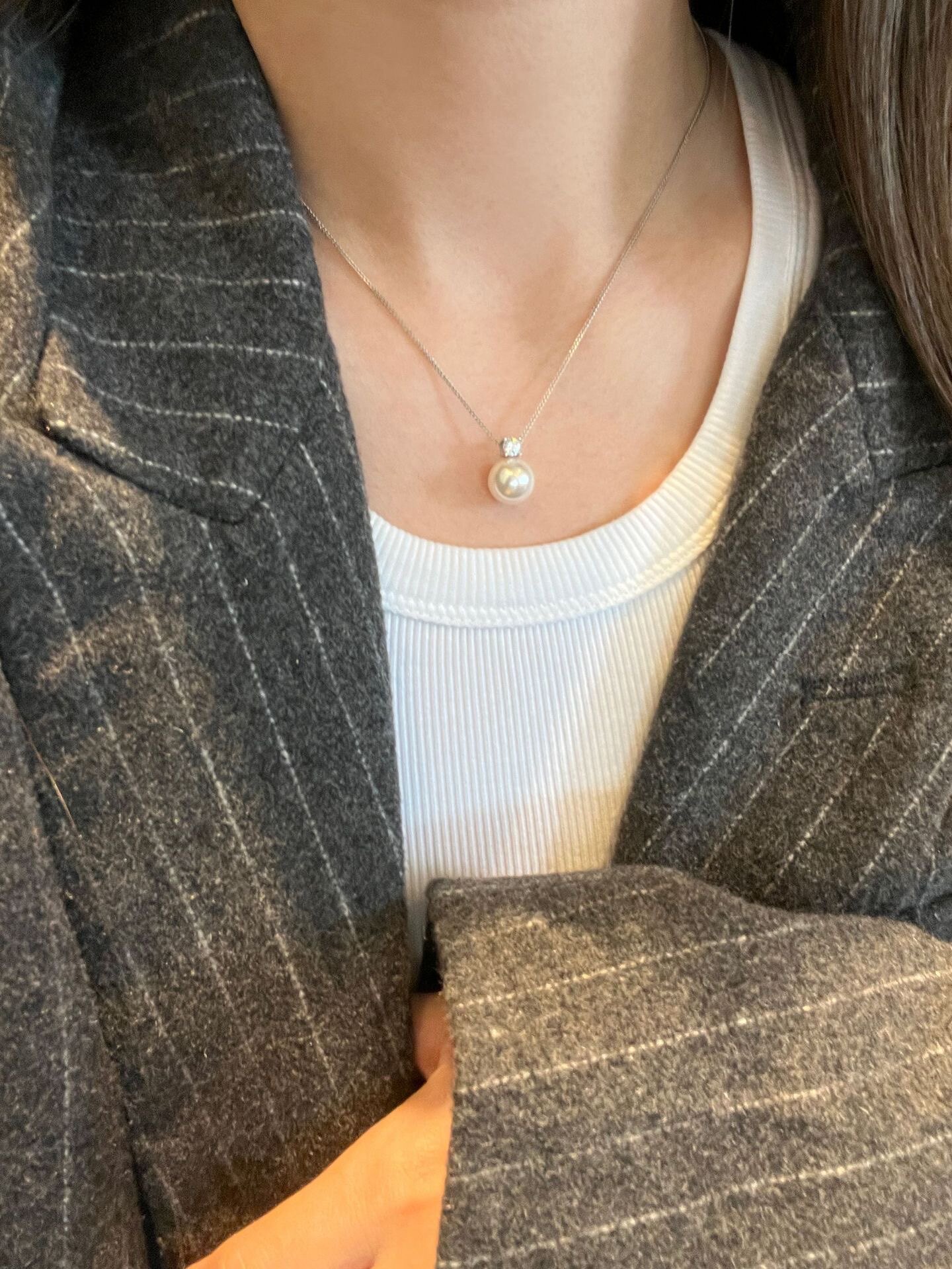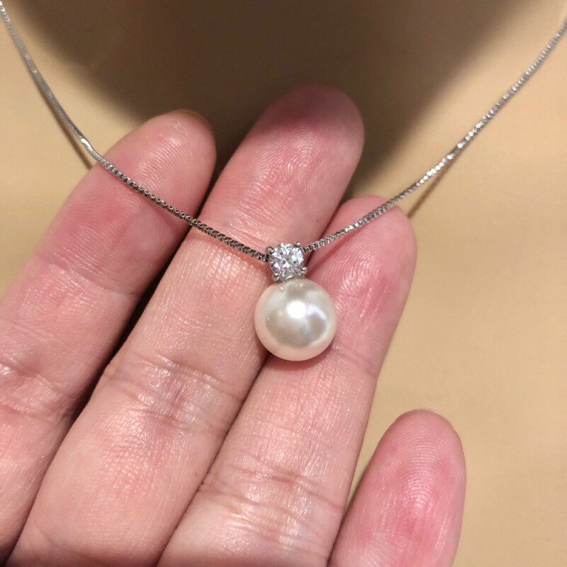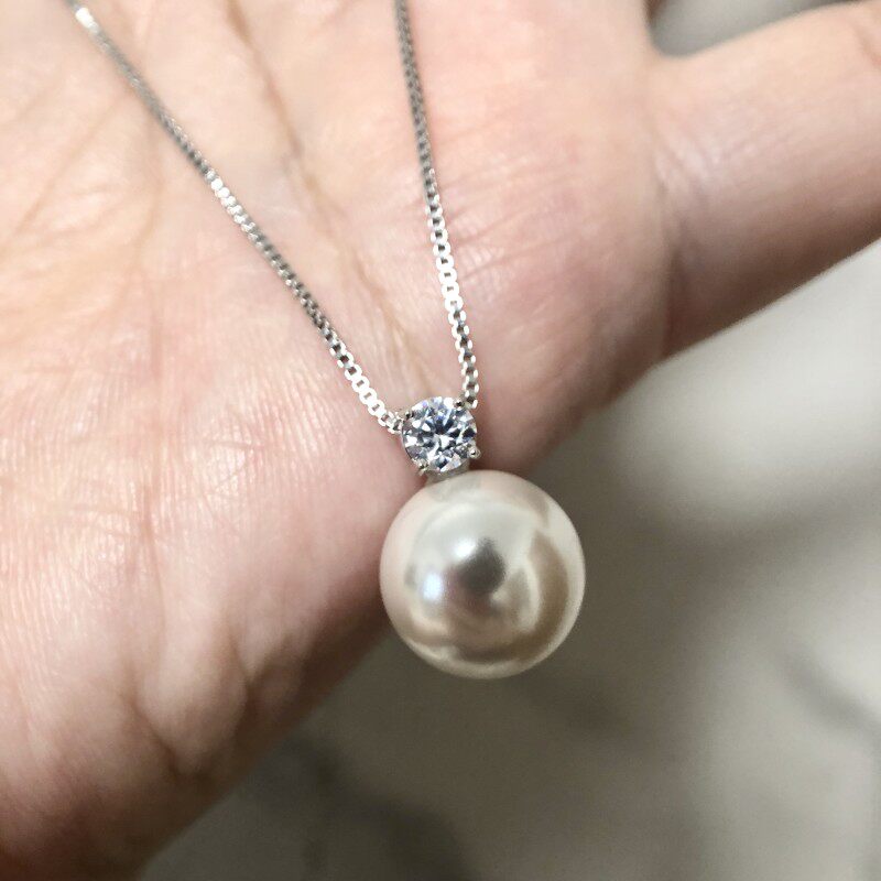 Импортная подвеска из жемчуга с цирконом, ожерелье, серебро 925 пробы