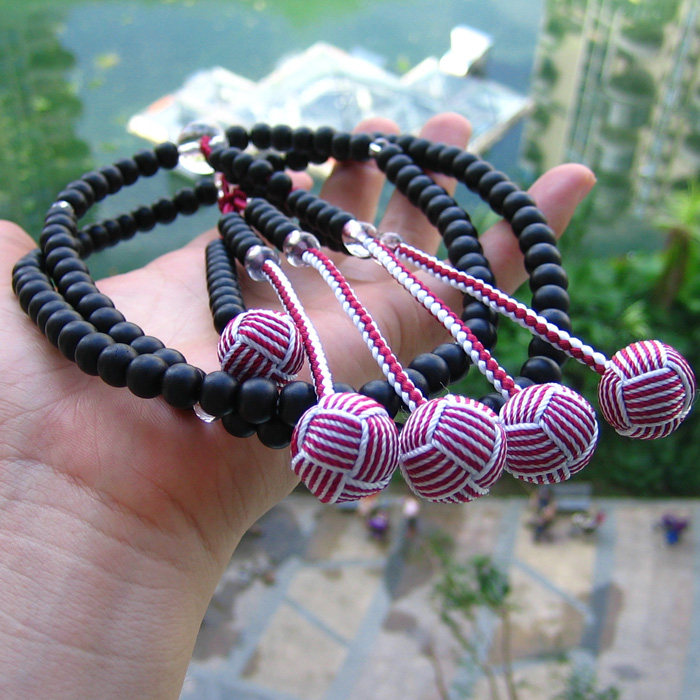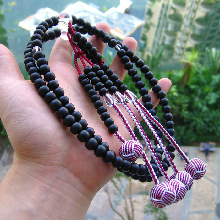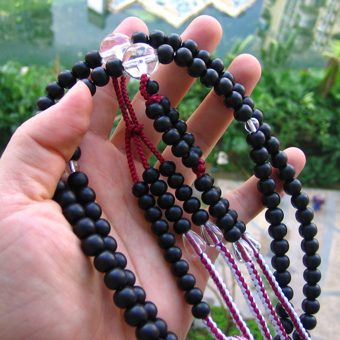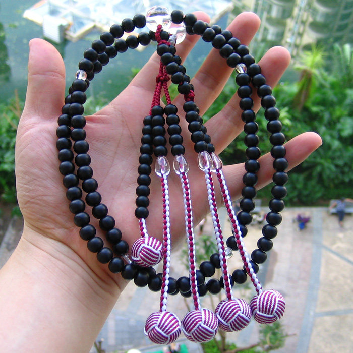 Импортные четки из круглых бусин из черного дерева Эбен, 108 бусин