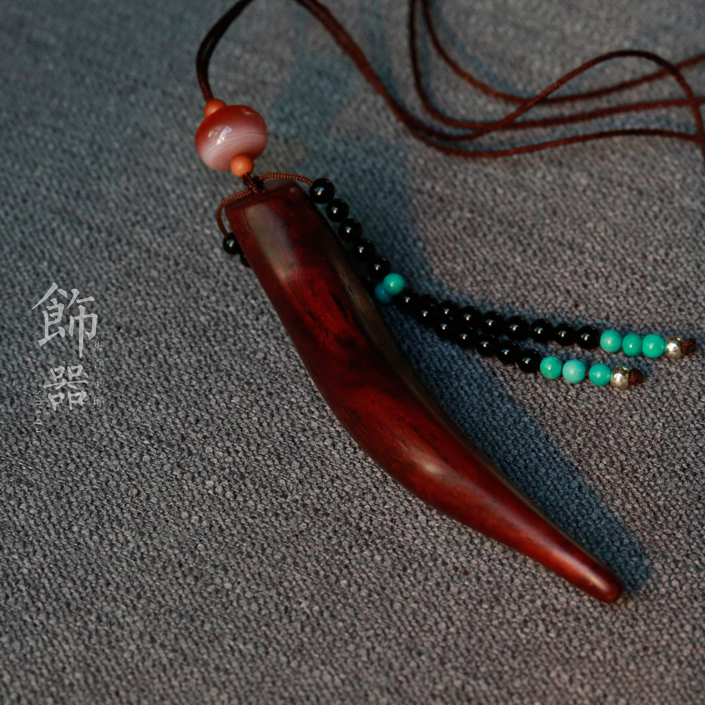 Оригинальная красная подвеска ручной работы, бирюзовые бусины с кисточками