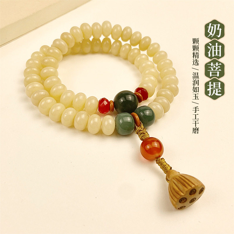 Кремовый браслет подходит для мужчин и женщин, четки из круглых бусин из грецкого ореха, счеты, четки бодхи