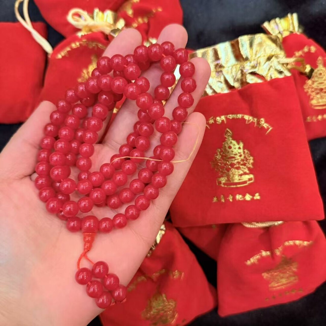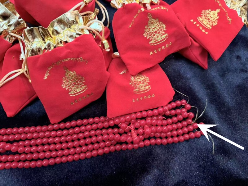 Настоящие четки из тканевой сумки Яцин, содержащие духовную энергию короля Ацю Дхармы Риранвы и Живого Будды Асонга.